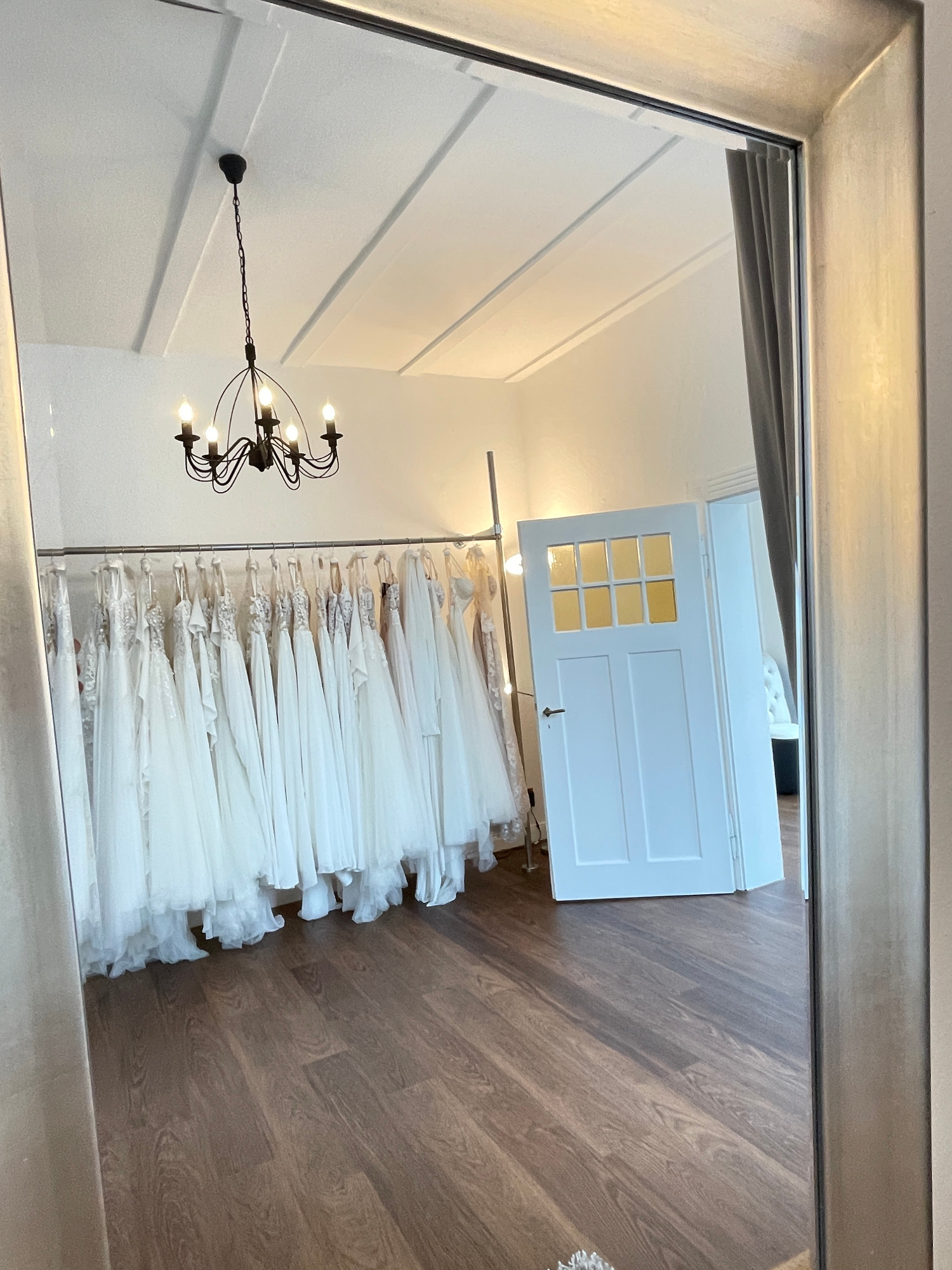 Wir bieten unserer Hochzeitskleider nur im Geschäft an, um dich gut beraten zu können.